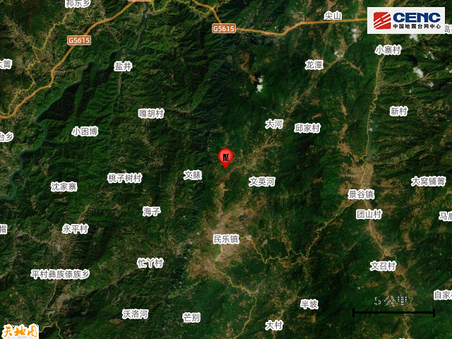 震中地形:震中5公里范围内平均海拔约1319米。