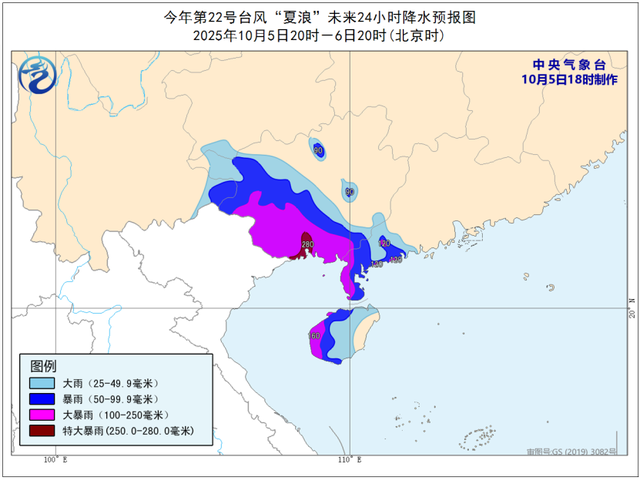 受其影响,今天夜间至明天,海南岛中西部、广东西南部、广西南部和西部等地部分地区有暴雨到大暴雨,局地特大暴雨。南海西北部、北部湾、琼州海峡、广西南部及沿海、广东西南部及沿海、海南岛沿海将有6至8级、阵风9至10级的大风,其中,台风中心经过的附近海域或地区风力有9至11级、阵风12至13级。