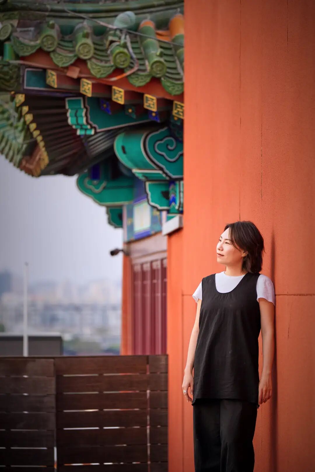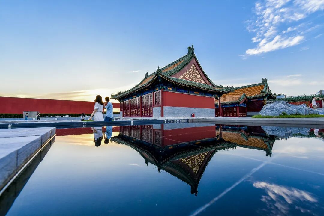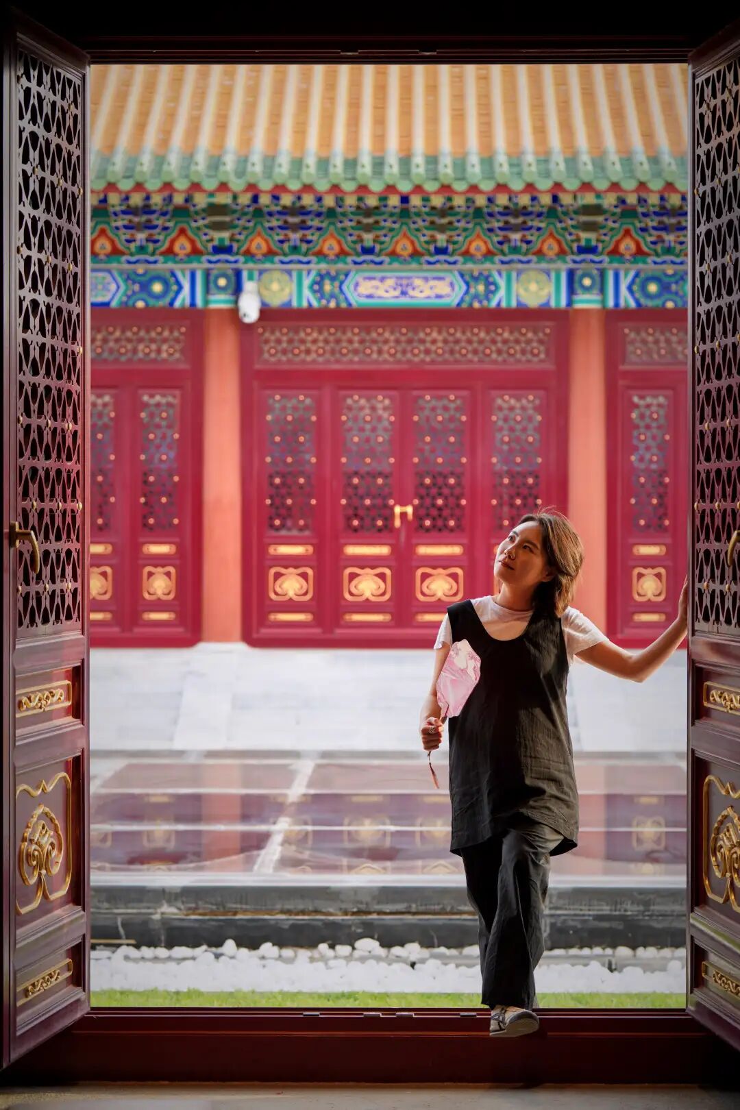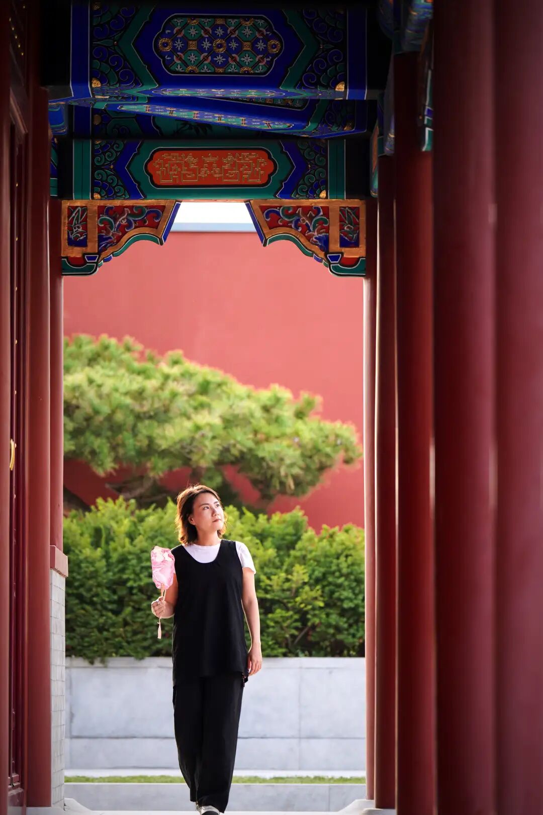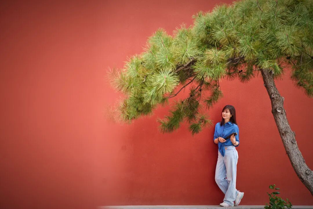 以红墙作为前景框架