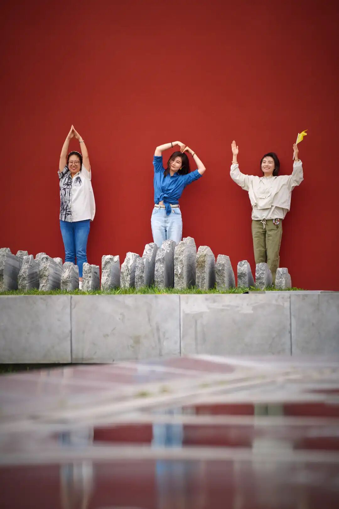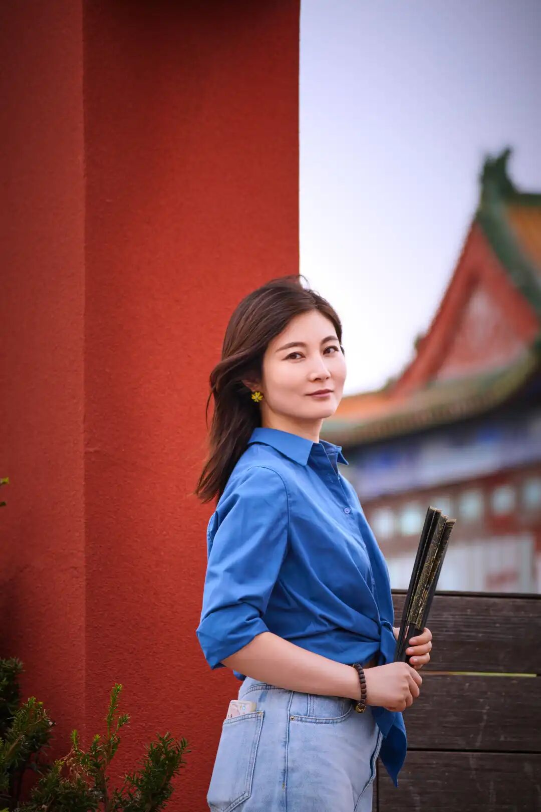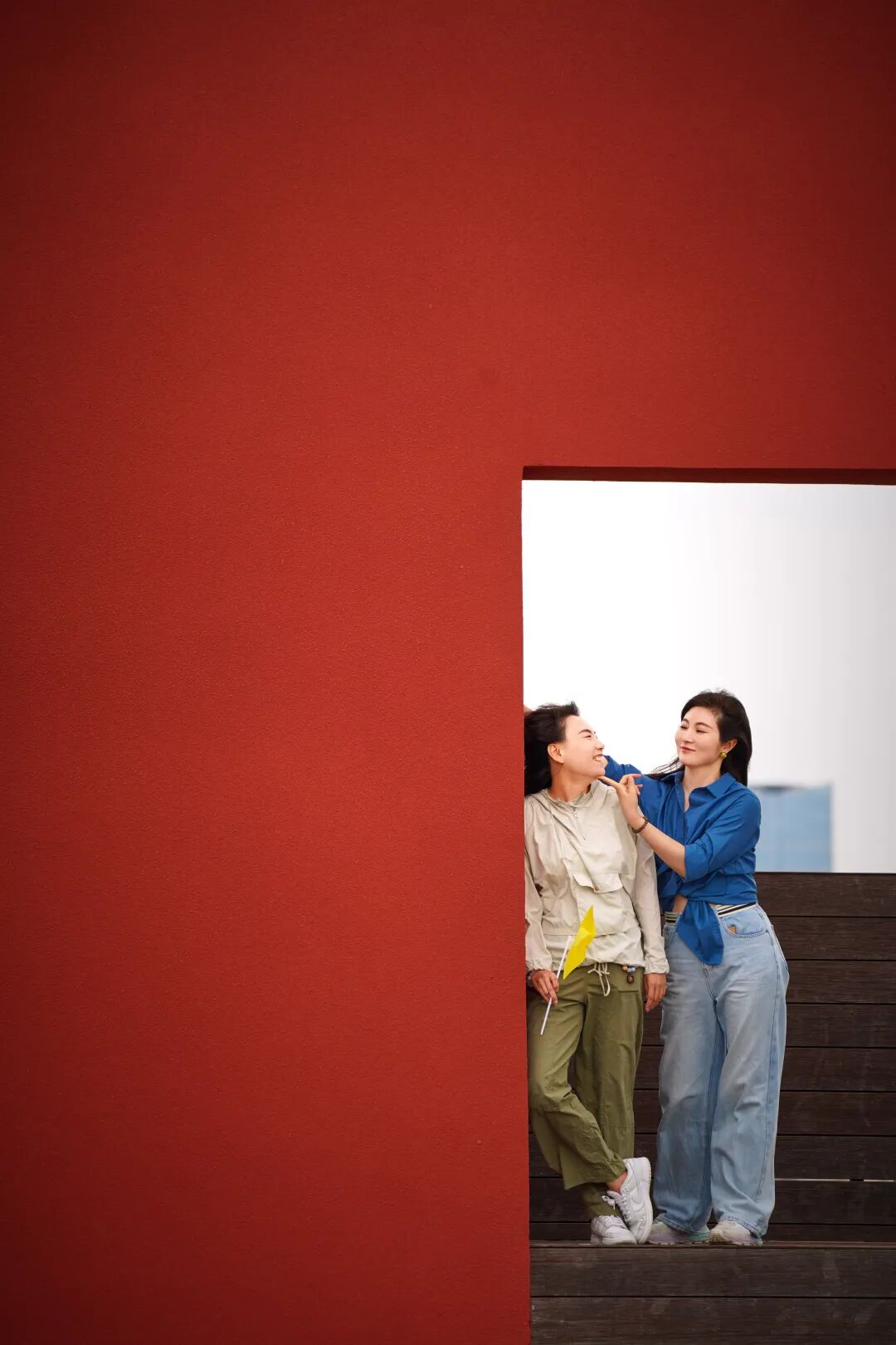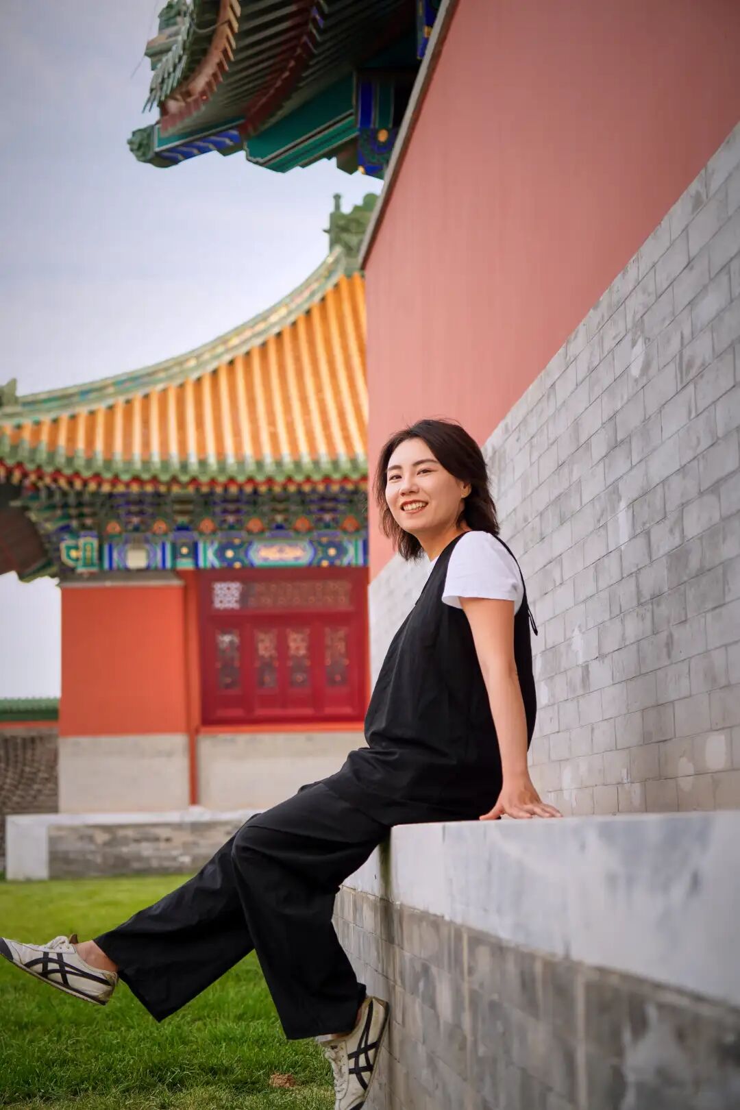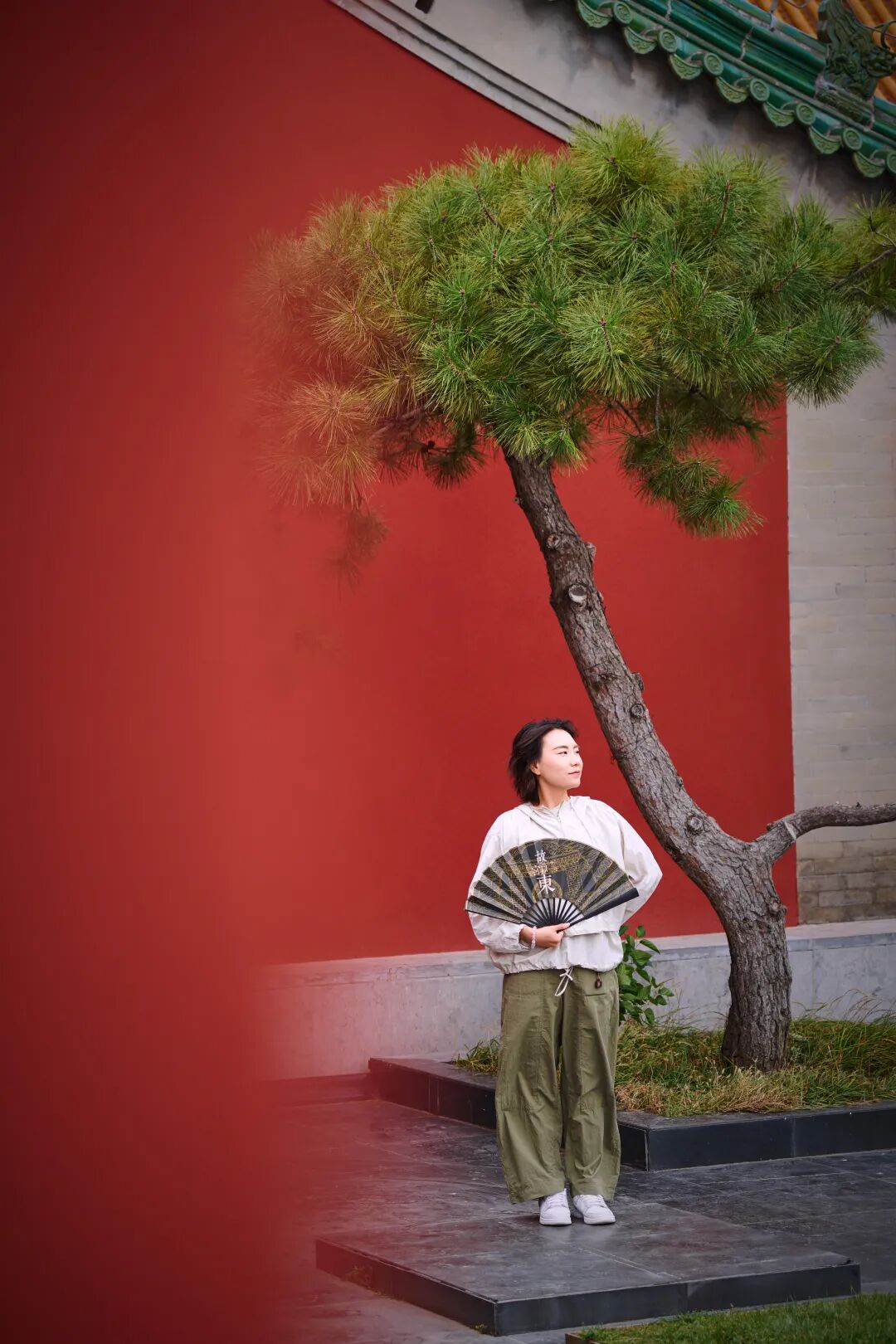 以红墙作为前景框架