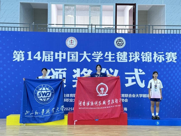 作为首次征战全国大学生毽球赛的“新军”,山东外事职业大学毽球队不惧强手、勇于亮剑,把本次大赛视作锻炼自我、展示风采的重要舞台。为备战赛事,队员们暑期提前返校,每日坚持六小时以上高强度训练,夯实技术基础。在领队徐元君、教练李喆海的悉心指导下,球队从小组赛阶段稳扎稳打,面对多支毽球传统劲旅始终斗志昂扬。赛场上,他们配合默契、自信从容,精湛的技术与顽强的意志赢得了观众与裁判的一致好评。最终,球队斩获4枚银牌、1枚铜牌,以优异表现位列乙组团体总分第三名,并荣获“道德风尚奖”,实现了竞技成绩与精神文明的“双丰收”。