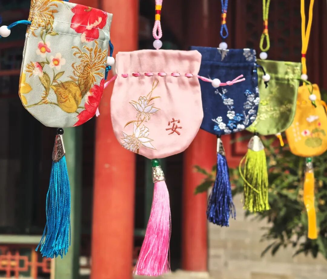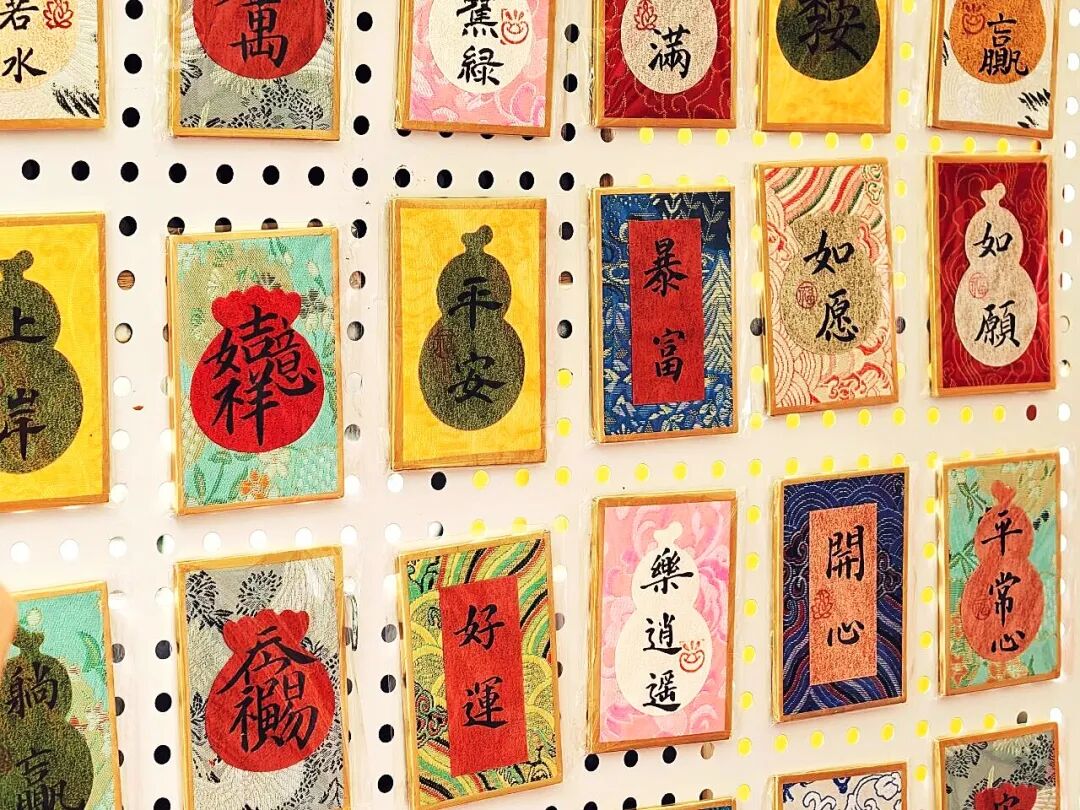 相较于市区里的热闹,香山(静宜园)“秋韵香山赋”市集多了一份山林间的惬意。市集藏在香山脚下,微风带着草木的清香拂过,绣着莲花与“安”字的粉囊、缀着吉祥纹的葫芦挂饰整齐摆放在摊位上,“心愿驿站”的木板上,贴满了游客写下的便签。
