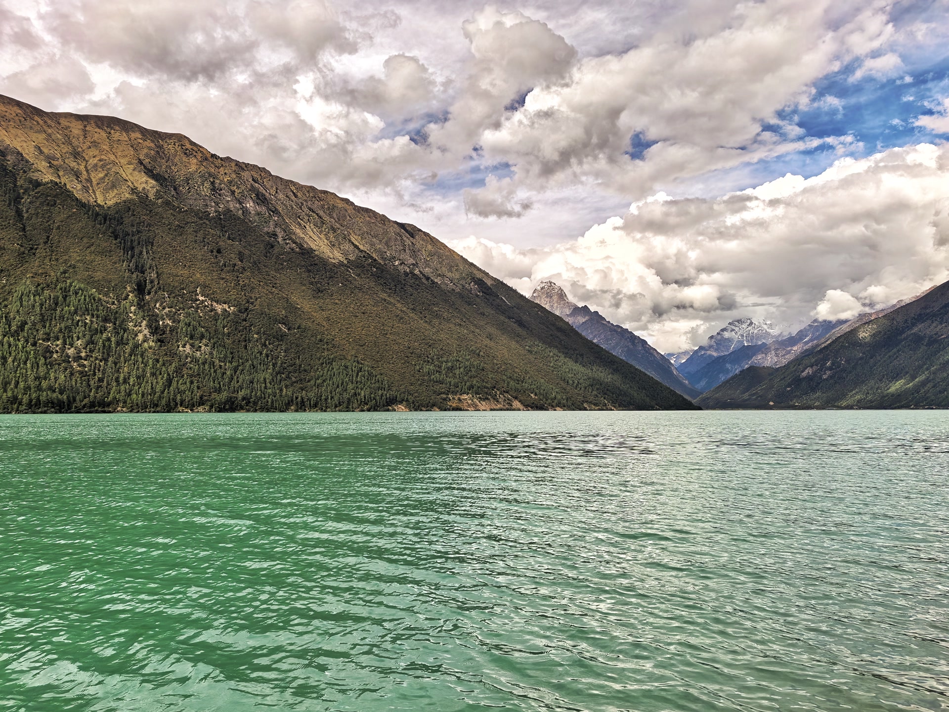 进入巴松措地区,湖水就开始变绿了。