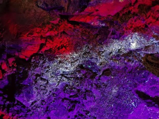 紫光灯照射下的白钨矿。新华社发(赵博摄)
