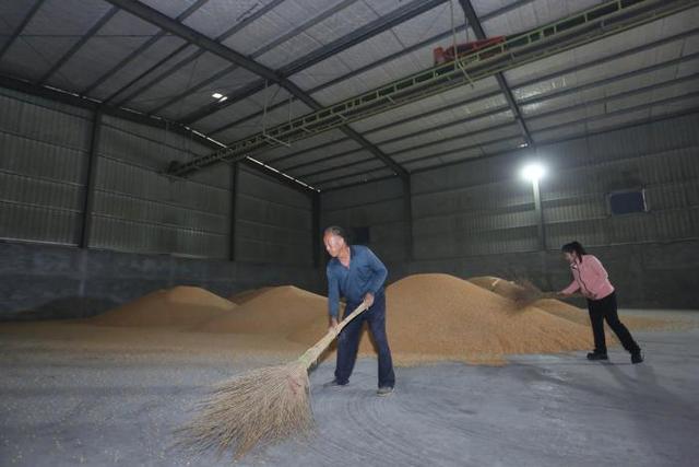 10月7日,工人在山东盛源种业有限公司秋粮存储区打扫烘干储存的玉米。记者 郭志华 摄