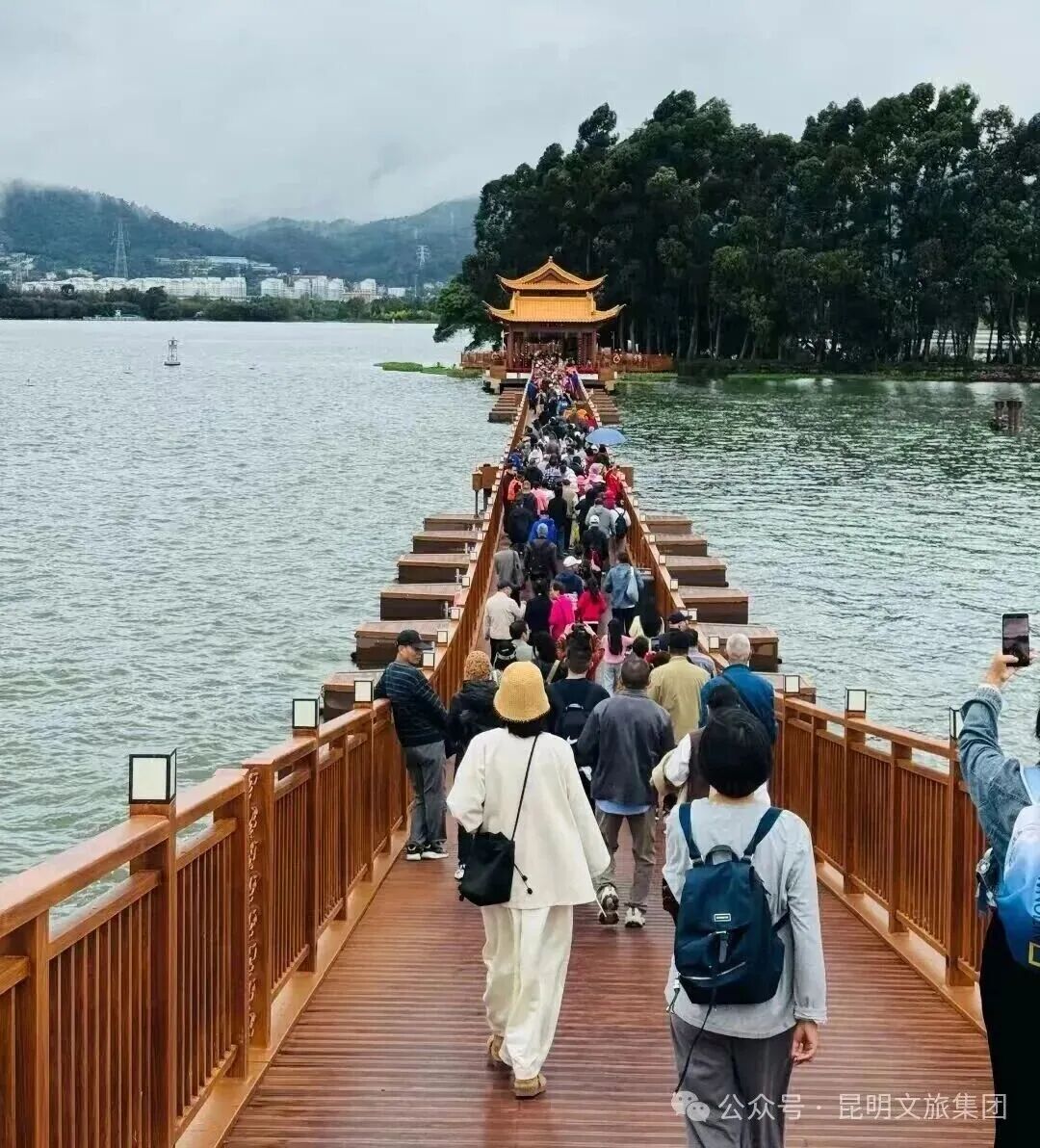 作为“双节”期间昆明最火爆的文旅打卡点,滇池草海开合浮桥凭借独特的“水上行、画中游”体验与高效的运营管理,成为游客争相前往的“网红地”,8天累计接待游客19.64万人次,单日最高(10月4日)达3.9万人次,全程运行秩序平稳,让“网红地标”真正成为游客心中的“长红风景”。