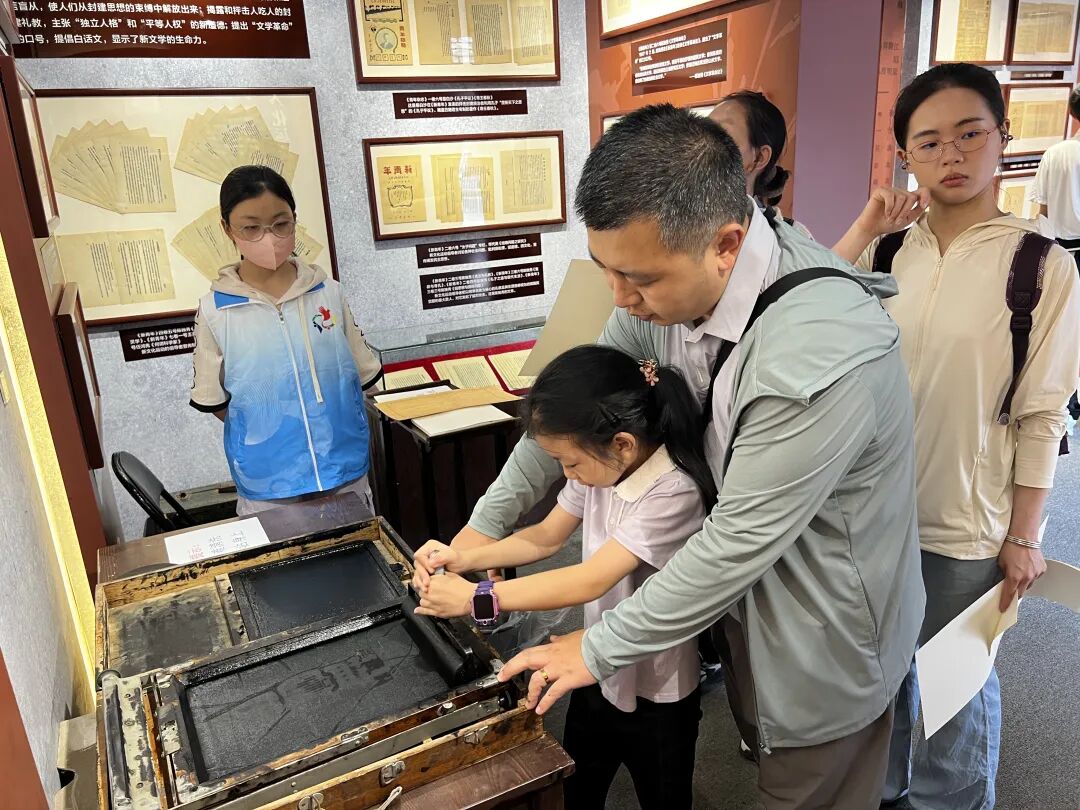 导览尾声的“杂志拓印”吸引了众多观众参与。大家拿起工具,在复原的《新青年》刊物模板上细细拓印,仿佛与百年前的革命者完成了一场跨越时空的对话。