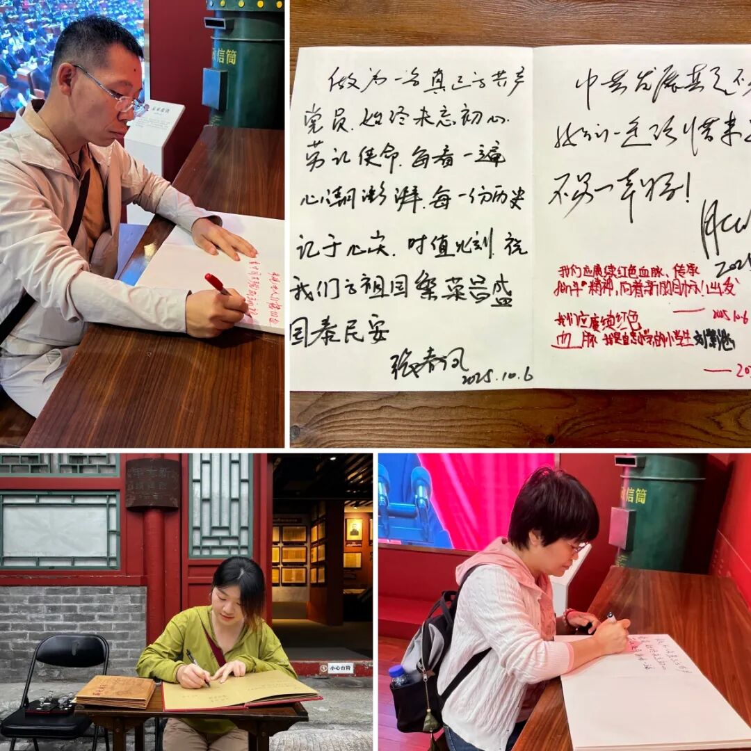“愿祖国山河锦绣,愿家人岁岁团圆”“从《新青年》的觉醒,到新时代的奋进,我们永远追光!”10月1日至8日,两处红色旧址的 “家国同庆” 主题留言区里,百余条真挚祝福写满了留言簿,字里行间满是对家国的热爱与期许。