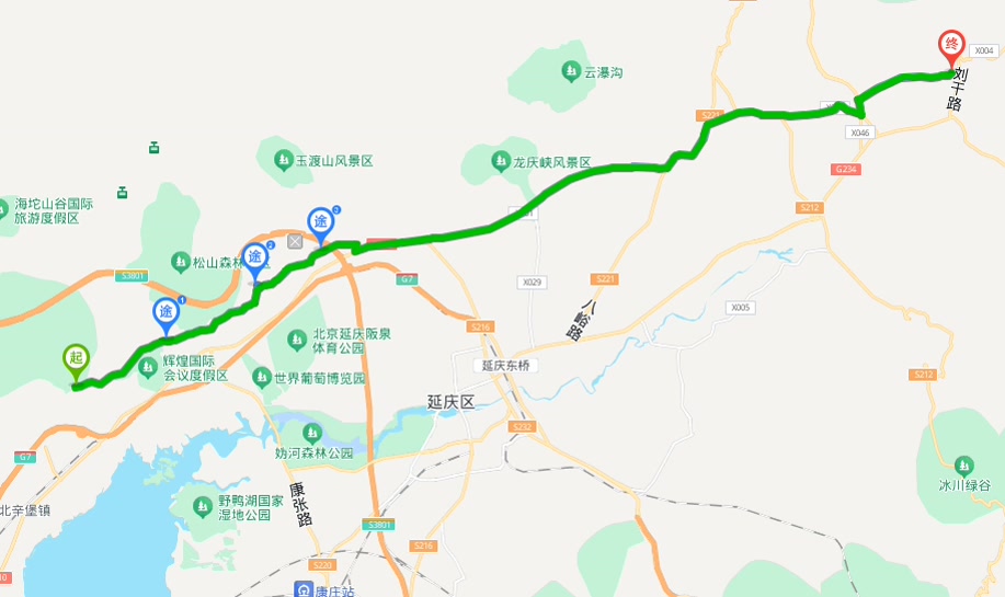 当前正值秋季沿途有丰富的水果采摘资源,路线沿途的张山营镇是延庆区颇有名气的“苹果之乡”,出产的苹果色泽鲜艳、品种优良,红富士苹果曾获得过“中华名果”称号,国光苹果获得过国家地理标志产品认证。还有白羊玉国光苹果种植基地,是北京地区最大的国光苹果产销基地,是延庆传统“国光苹果”的品质代表。路线沿途的“香营八棱脆海棠”也非常值得体验采摘。