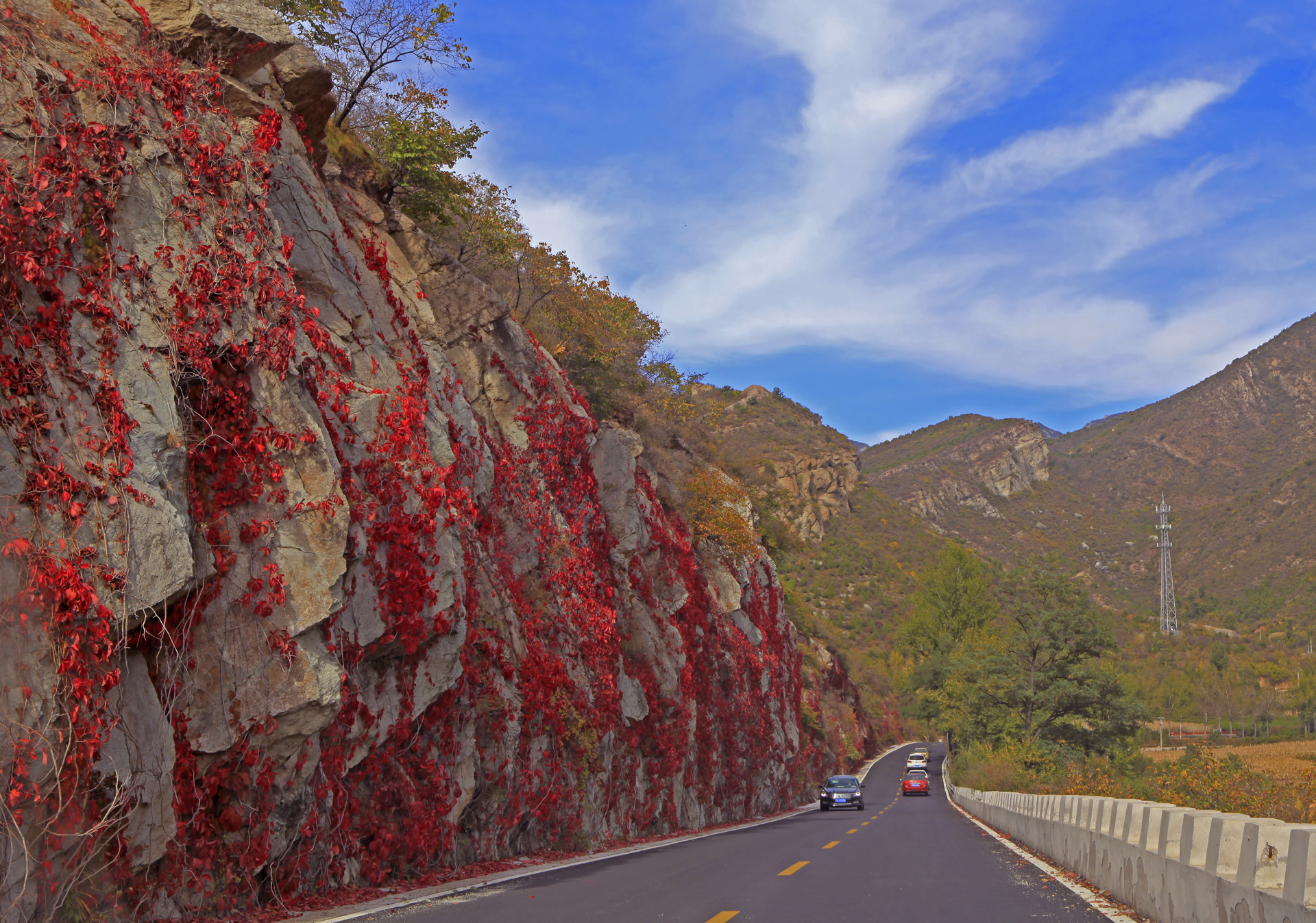 这条路线主要由古龙路、香龙路组成,串联起古崖居和龙庆峡两大景区,起点位于古崖居风景区,终点为香龙路与刘干路交叉口。本路线不仅是一条串联延庆北部山区的交通要道,更是一条穿梭在秋日彩林中的景观长廊。道路依着山形走势,有些地段落差比较大,呈U字型,行驶其中,极具视觉冲击力,尤其秋季最美,因此这条路线也是众多骑行与摄影爱好者的网红打卡圣地,古龙路也是此前热播电视剧《玫瑰的故事》取景地。