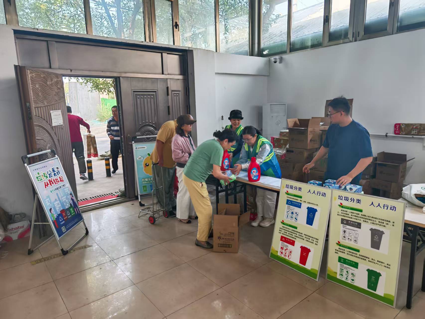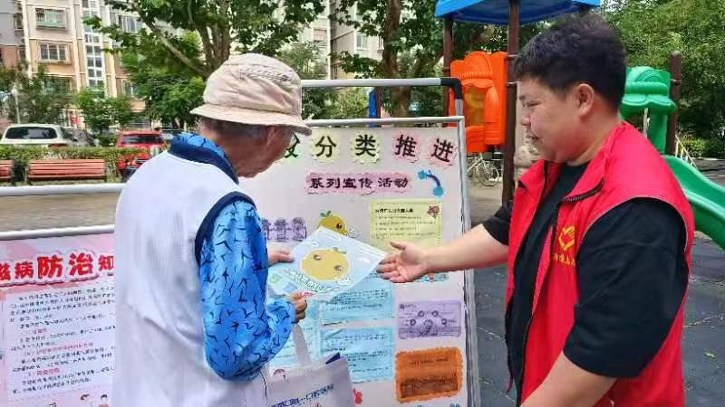 活动中,社区工作者用通俗易懂的语言向辖区居民和垃圾分类志愿者介绍了垃圾分类的意义、四品类垃圾(可回收物、有害垃圾、厨余垃圾、其他垃圾)的区别,并通过实物举例帮助大家掌握分类技巧。