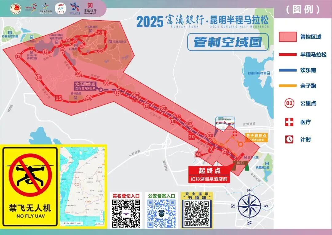 2025富滇银行·昆明半程马拉松将于2025年10月12日在昆明市石林彝族自治县举行。为保障赛事安全、顺利进行,根据《中华人民共和国道路交通安全法》有关规定,赛事期间将对我县部分道路分时、分段实施临时性交通管制措施,现将有关事项通告如下: