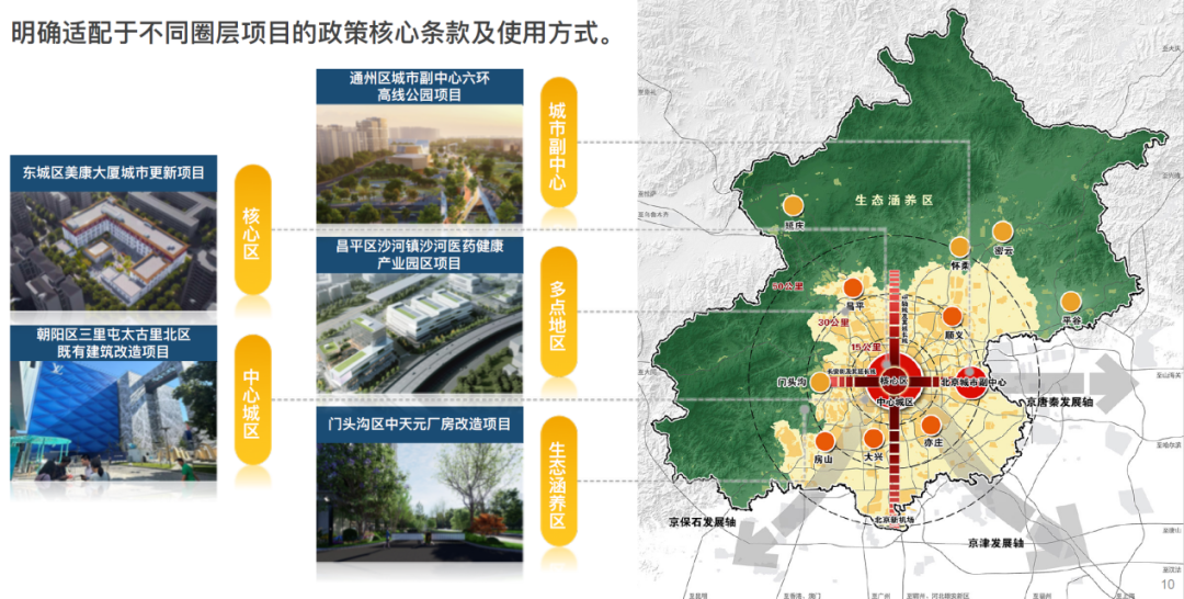 区位上,案例涵盖了首都功能核心区、中心城区、城市副中心、多点地区与生态涵养区,明确适配于不同圈层中各类型项目的政策核心条款以及使用方式。