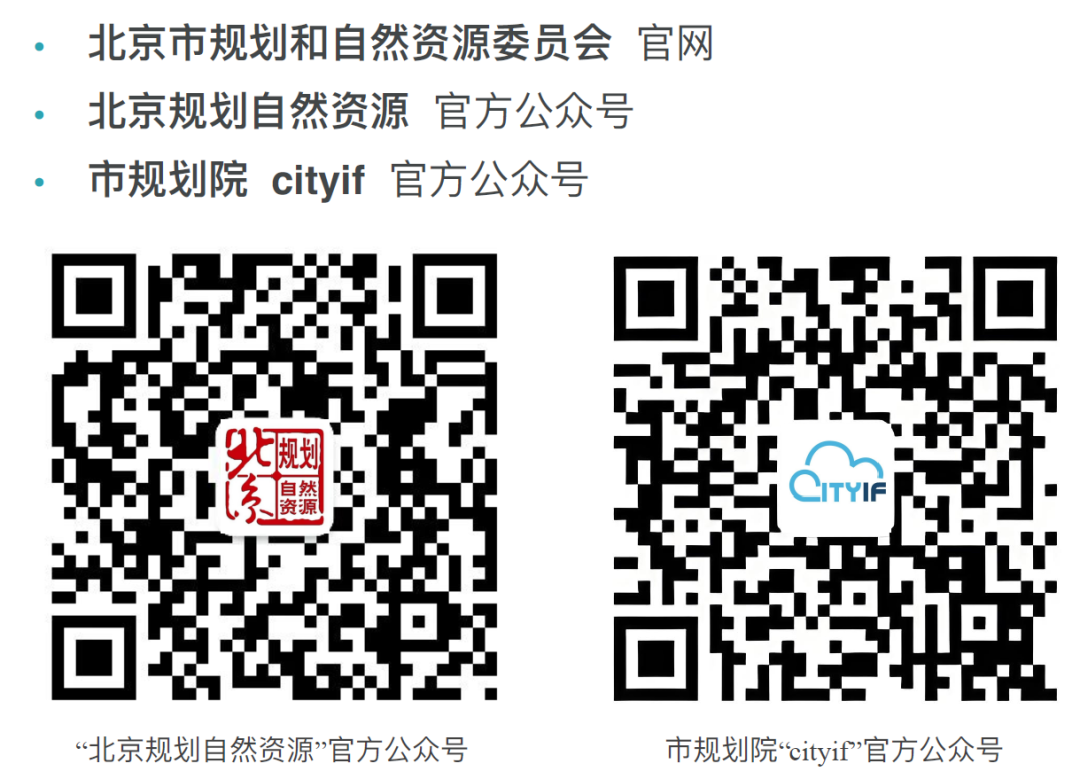 《指引》已在北京市规划和自然资源委员会官网、北京规划自然资源官方公众号、市规划院cityif官方公众号上线,可扫码关注公众号搜索下载。