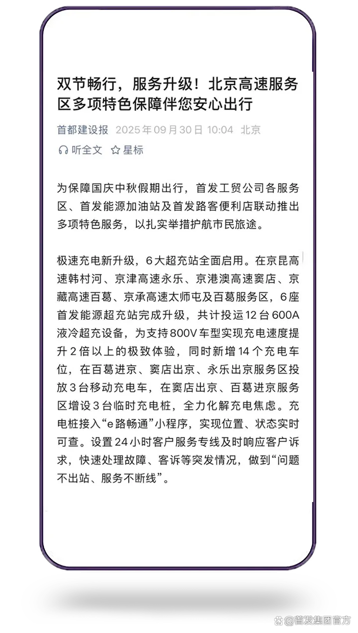 假期有尽时,服务无止境。首发集团将持续提升运营管理与服务水平,让首都高速公路始终成为公众放心、舒心的平安大道、幸福通途。