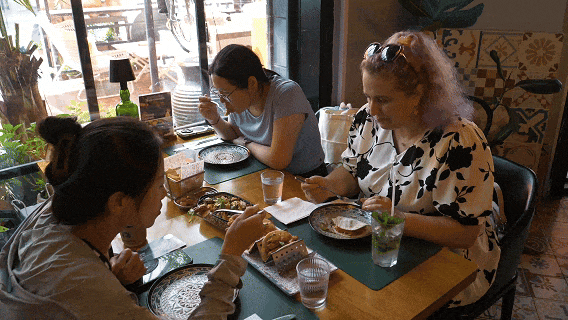 外籍友人在空港街道就餐