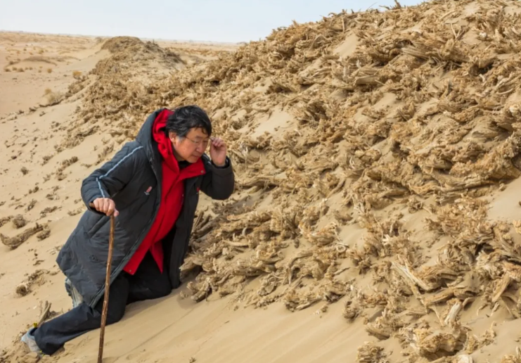 赵琛在金塔县垒木长城实地考察