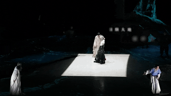 而当赵氏孤儿长大成人,他把一切真相和盘托出,舞台上,一个个死去的人、入局的人再度站上画框,程婴也迈着年迈的步伐坚定地走了上去。
