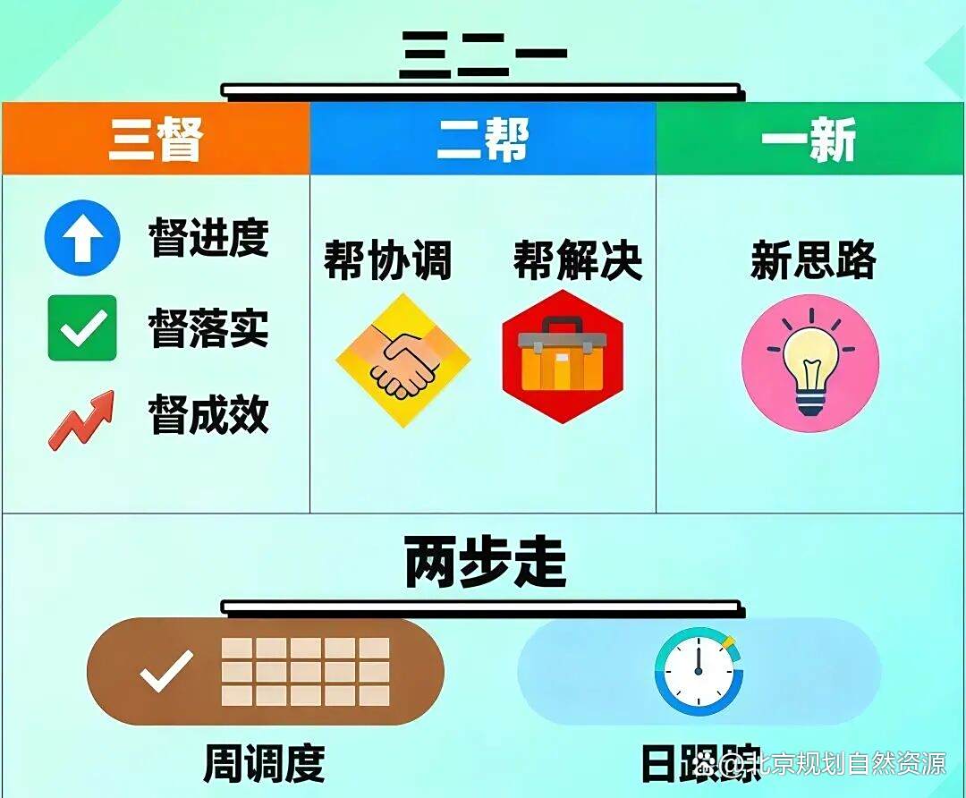 在落实层面通过“两步走”细化推进:一是通过“周调度”强化统筹协调,涉及内部科室的当日落实,涉及外部单位的当周落实,涉及重点问题第一时间上报,确保问题发现一处、协调一处、解决一处;二是通过“日跟踪”建立工作模式,安排专人每日跟进重点项目,确保进展实时更新,难点问题第一时间统筹调度。