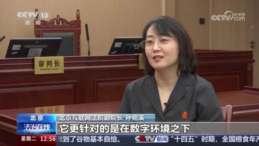 10月14日,CCTV13《法治在线》集中报道了北京互联网法院审理的涉人工智能侵权典型案例,北京互联网法院党组成员、副院长孙铭溪,综合审判三庭庭长颜君,综合审判一庭法官刘承祖接受采访,对相关案例进行了详尽解读。