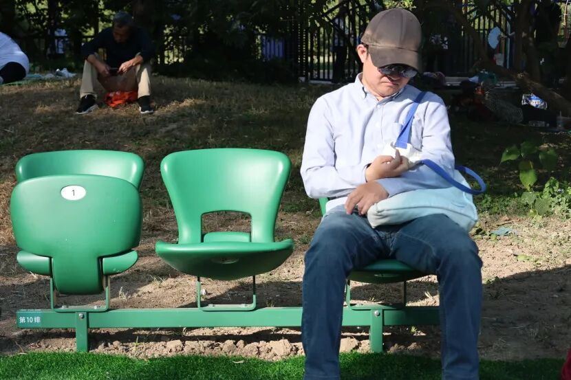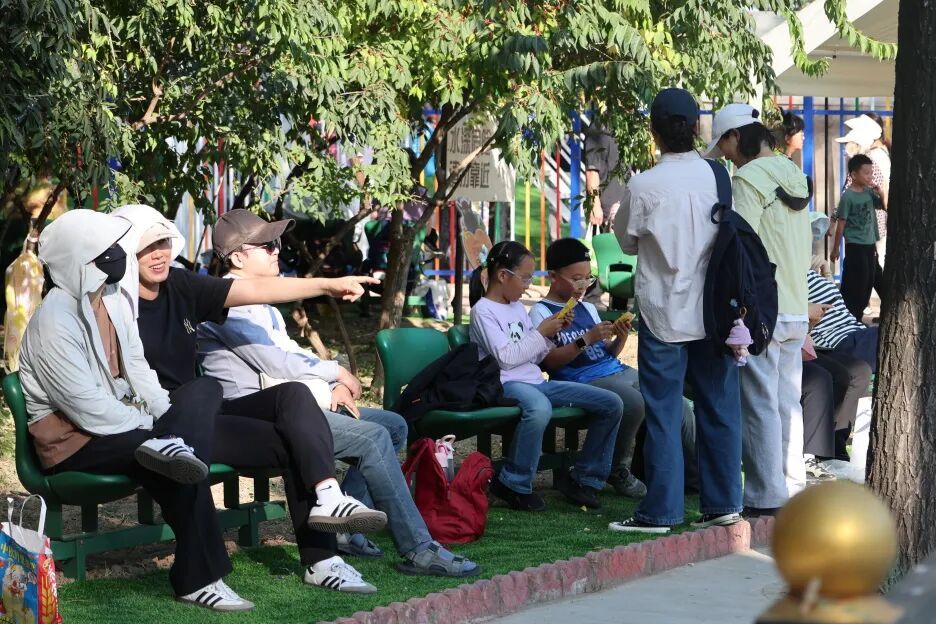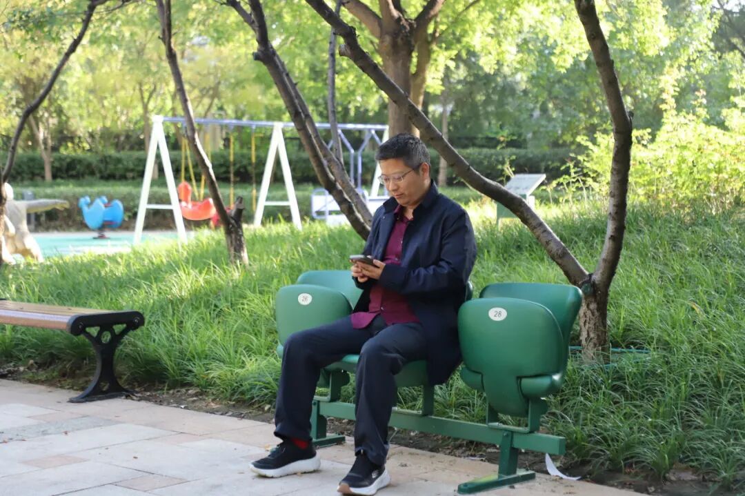 在小区内,座椅成为居民们的“户外客厅”,承载邻里之间的问候与陪伴。带孩子认识城市、陪父母闲坐聊天、刷手机放松……观礼椅也从国家仪式的“见证者”,变成了为民服务的“承载者”。