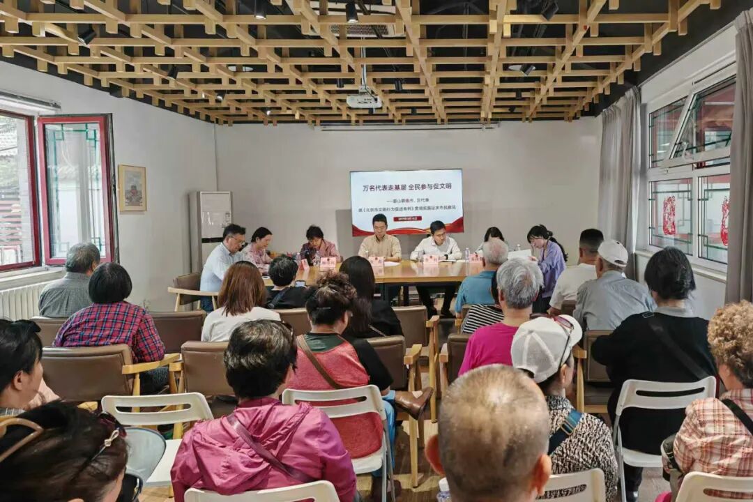 景山街道“人大代表之家”组织开展“万名代表走基层 全民参与促文明”暨景山联组市、区人大代表就《北京市文明行为促进条例》贯彻实施征求市民意见活动。