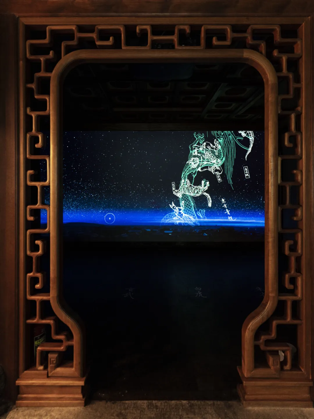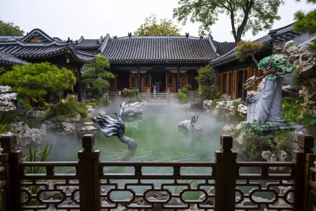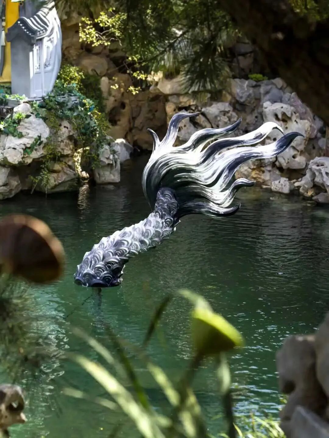 ✨叶坤宇《潜龙在渊》:灵感源自北新桥锁龙井传说,龙的部分身体露出在水面,部分藏在水光里,既有传统文化里“潜龙勿用”的静谧,又有当代艺术的留白感。古色古香的庭院衬着水面龙影,风吹过的时候,光影在龙身上流动,像真的有一尾龙潜伏在渊。遇上雨天雾气升腾,这只潜龙好像随时要跃出水面,飞上九天!