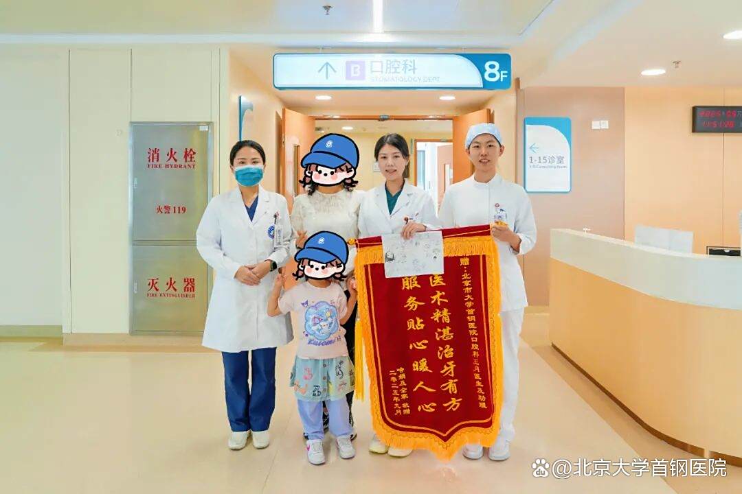日前,北京大学首钢医院口腔科上演了温馨一幕:一位6岁乳牙反合(俗称“地包天”)的患儿在家长陪同下,专程将一面写有“医术精湛治牙有方,服务贴心暖人心”的锦旗送到王月医生手中,表达诚挚谢意。