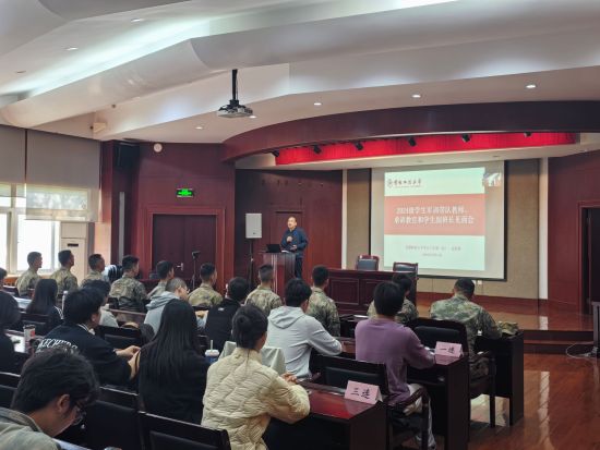 许虎围绕军训意义、组织架构、工作理念、纪律要求、注意事项及连排班建制,详细介绍2024级学生军训具体安排。见面会上,他进一步明确带队教师、承训教官与学生副班长的工作职责,强调各方需密切配合,实时关注学生状态,及时发现并解决问题,共同为军训顺利开展筑牢保障。