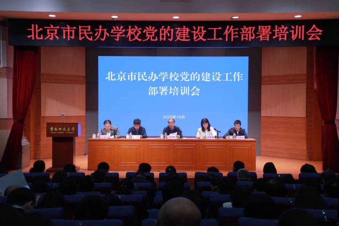 2025年10月15日,北京市民办学校党的建设工作部署培训会在首都师范大学召开。会议全面贯彻落实中央关于加强民办学校党的建设工作意见文件和第28次全国高校党的建设工作会议精神,部署全市民办学校党建思政工作,并聚焦新出台的《北京市加强民办学校党的建设工作的实施意见》进行了解读培训。