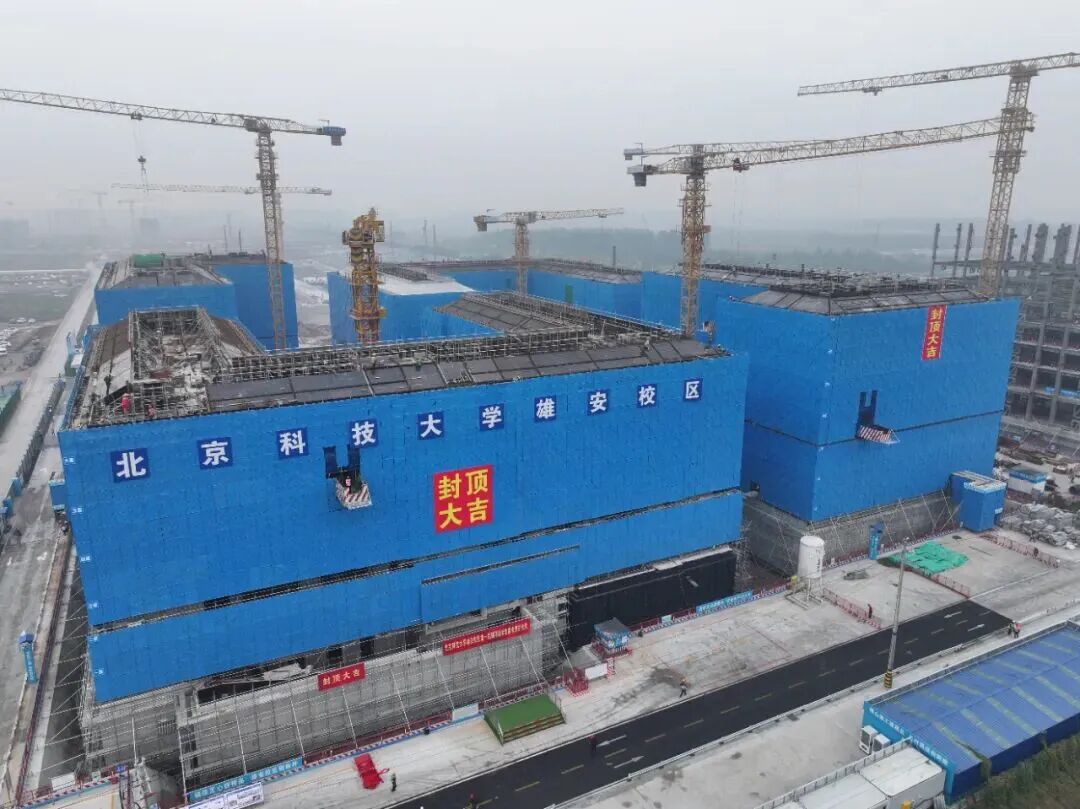 10月15日,北京科技大学雄安校区第一组团项目——四栋学生宿舍楼封顶,北京向雄安疏解高校的建设又有了新的进展。