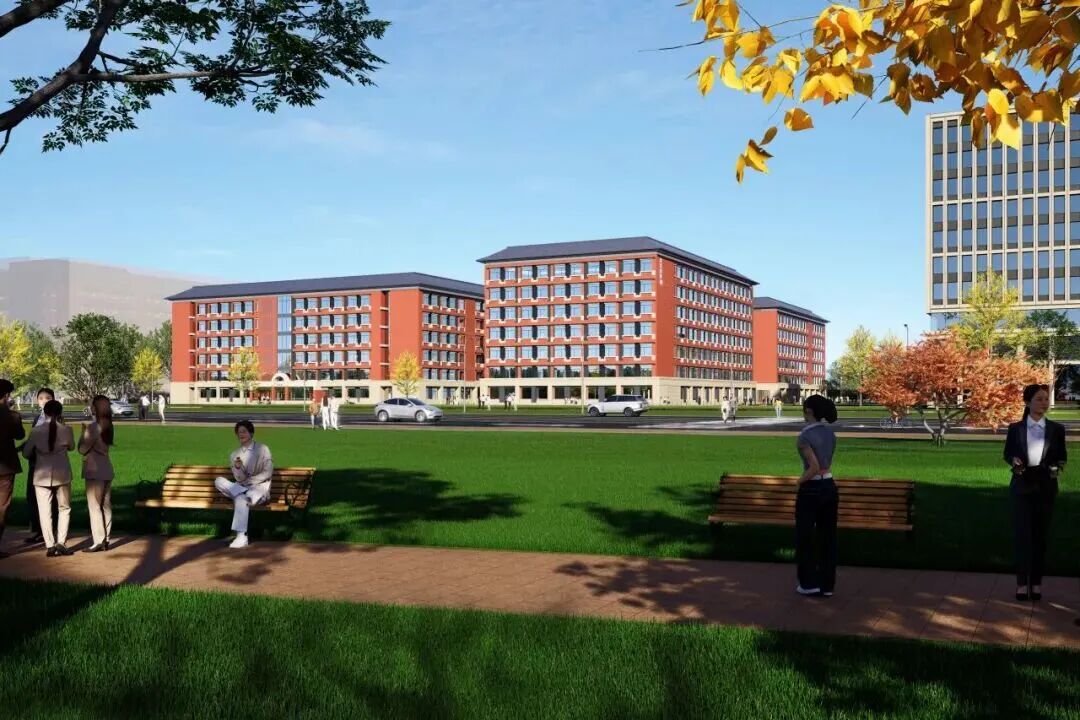 第一组团项目位于雄安校区西南角,南邻雄安新区主干道燕赵大街,总建筑面积8.3万㎡,于2024年12月16日开工建设。项目包含四栋宿舍楼、钢铁书院和综合楼等六栋建筑。