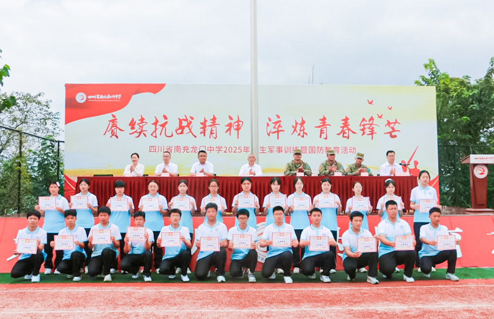 为集中展示军训成果,弘扬伟大抗战精神,展现参训学生扎实的训练水平与良好的精神风貌,10月15日下午,四川省南充龙门中学举行了高2025级新生军事训练总结暨表扬大会。执行校长张莉梅、党委副书记唐兵、副校长周勇、副校长张洪波、工会主席万彩霞、军训总教官出席大会,高2025级全体班主任及参训学生参加大会。大会由学工处主持。