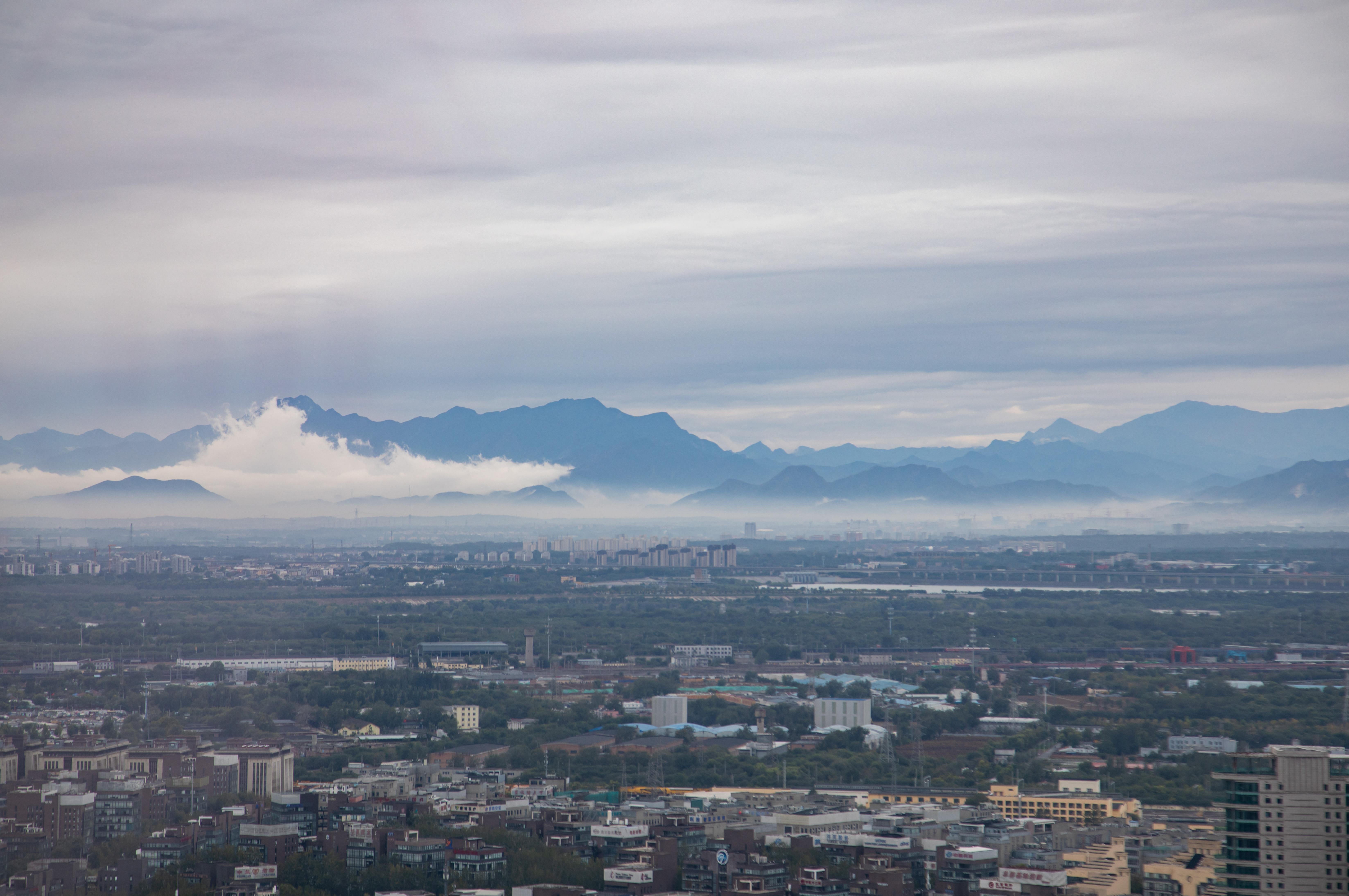 今日,一场秋雨过后,京城空气清新,景色宜人。今晨从丰台区向西远眺,未消散的云雾如轻纱般笼罩在西山附近,群峰在云雾中若隐若现,构成一幅“流动”的千里江山图。