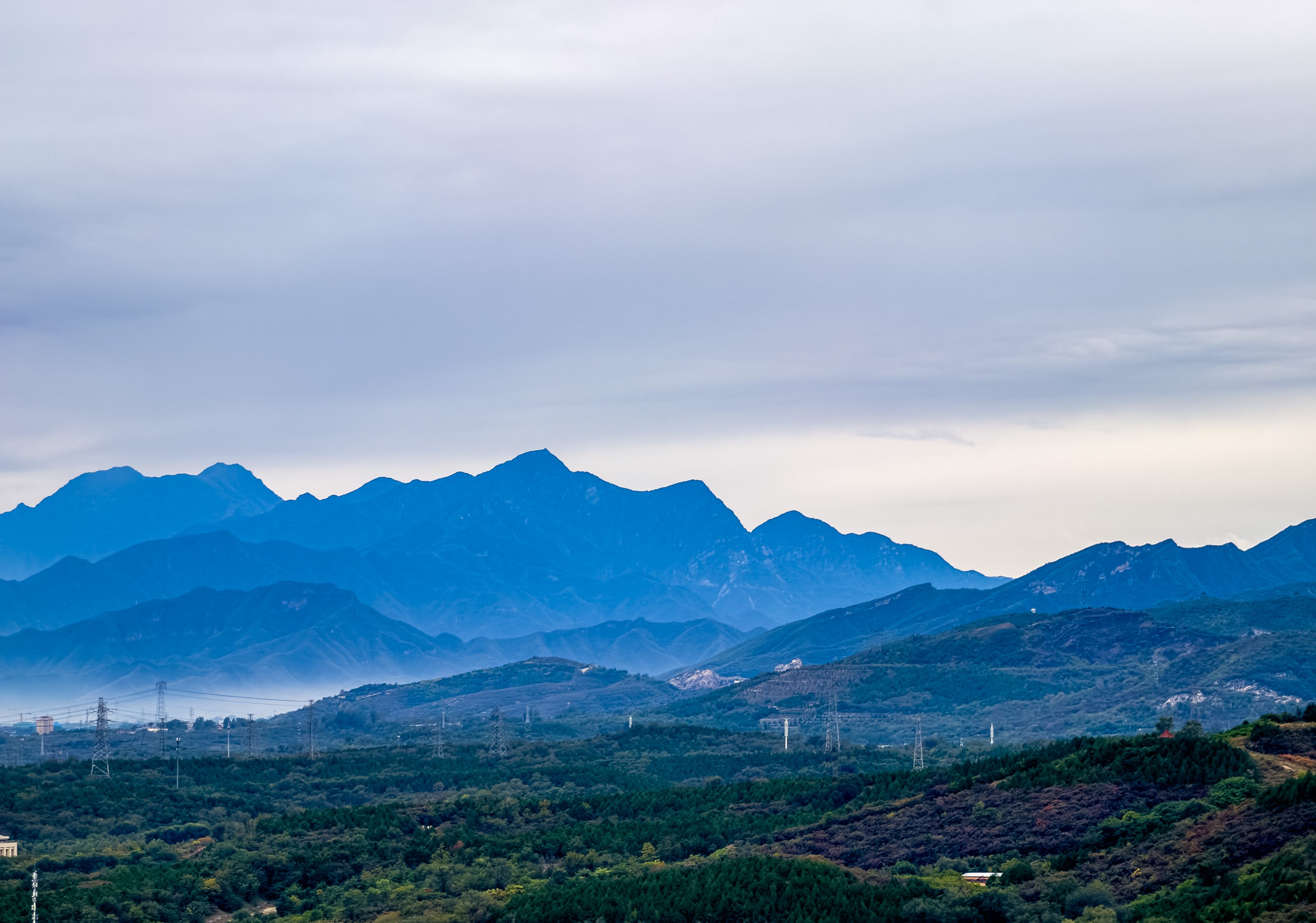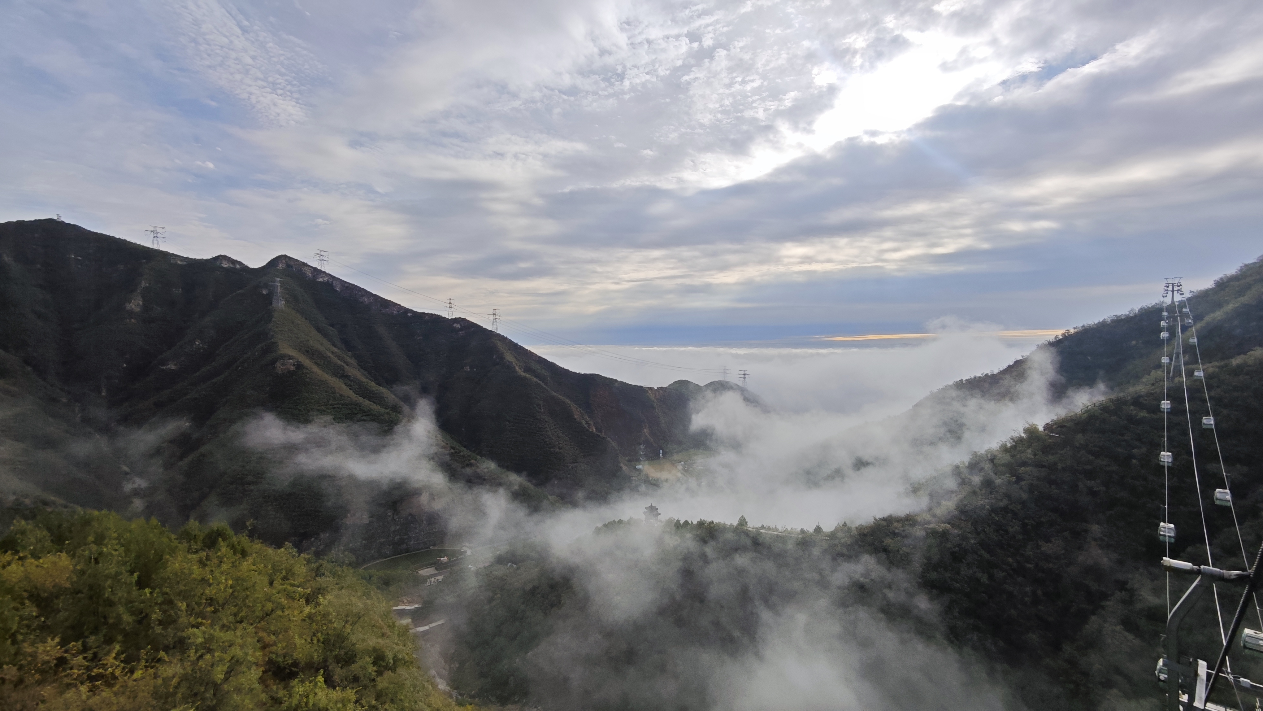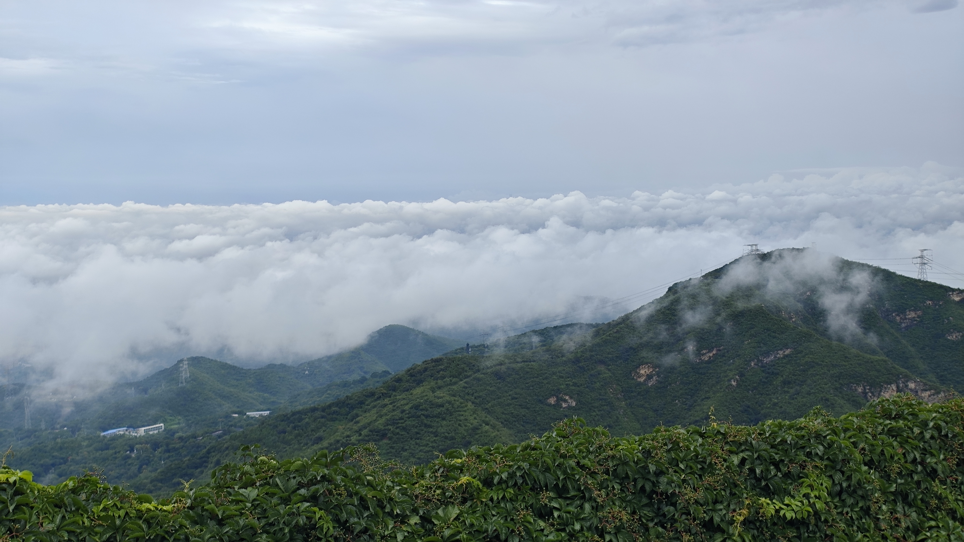 站在丰台区的高处向西望去,只见连绵的西山笼罩在薄雾之中,墨绿色的山脊在云层间时隐时现。乳白色的云雾在山峦间缓缓流动,时而如瀑布倾泻,时而如丝带缠绕,为苍劲的西山平添了几分柔美,阴影处的青灰色形成鲜明对比,更显层次分明。
