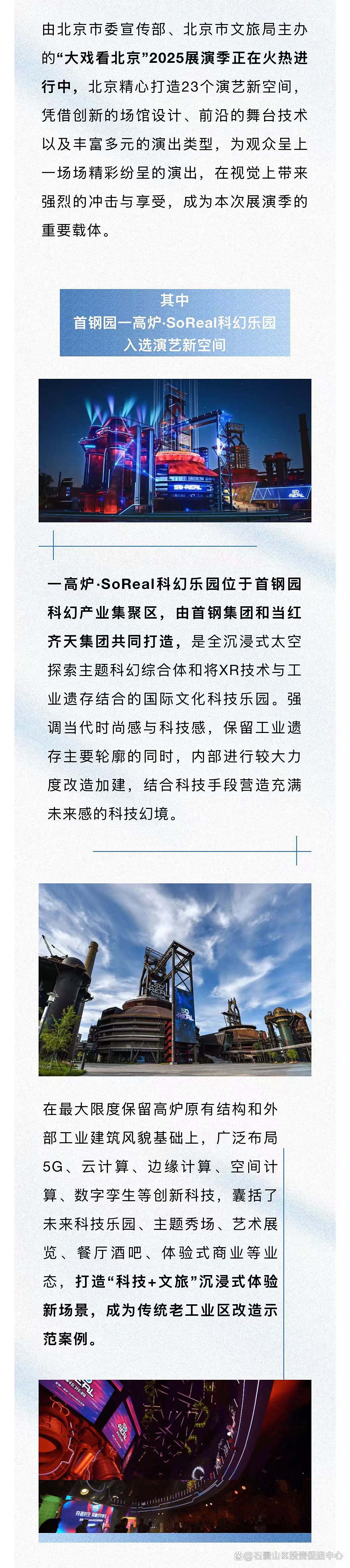 工业遗址奏响文化新声!石景山首钢园一高炉・SoReal科幻乐园入选 “大戏看北京”演艺新空间