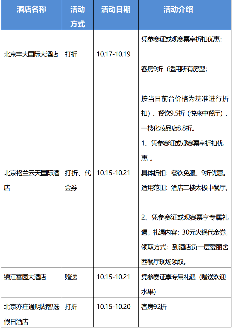各酒店活动汇总如下: