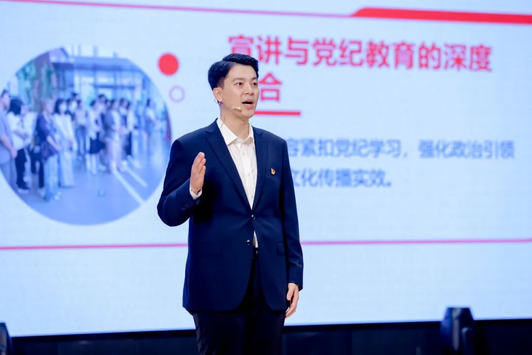 在宣讲中,香山革命纪念馆党总支党员代表佟烔分享了“以‘党建+巡展’之笔,绘就新时代赶考新画卷”2024年香山馆巡展党建品牌实践成果。