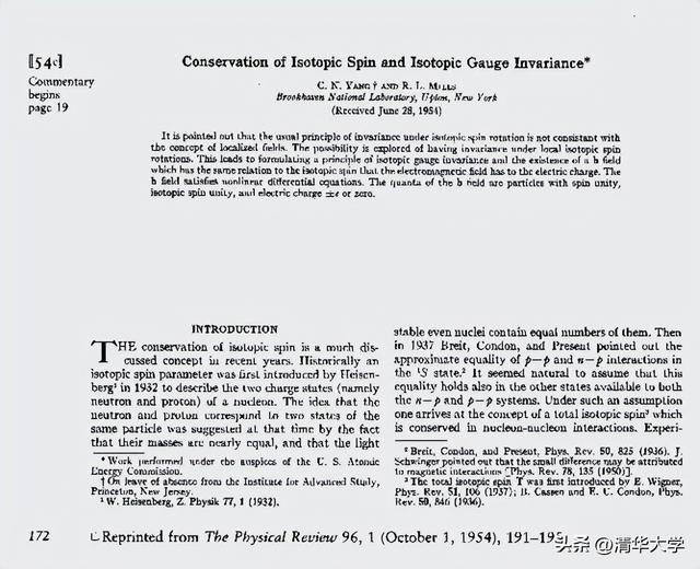 1954年杨振宁与米尔斯关于“非阿贝尔规范场”的论文