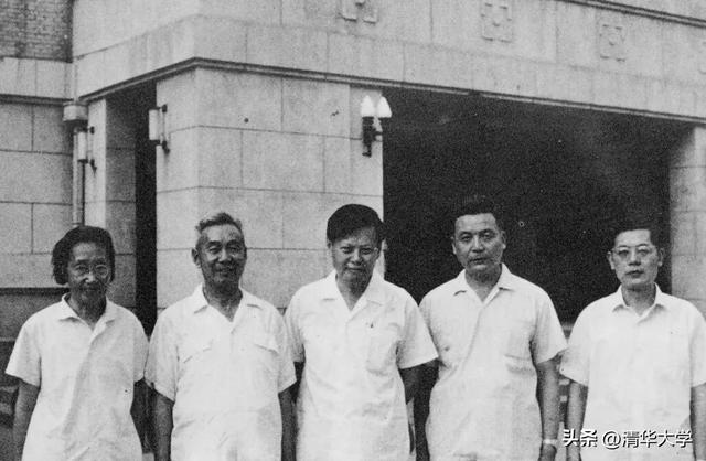 1972年杨振宁与王承书(左一)、张文裕(左二)、邓稼先(右二)、周光召(右一)于北京