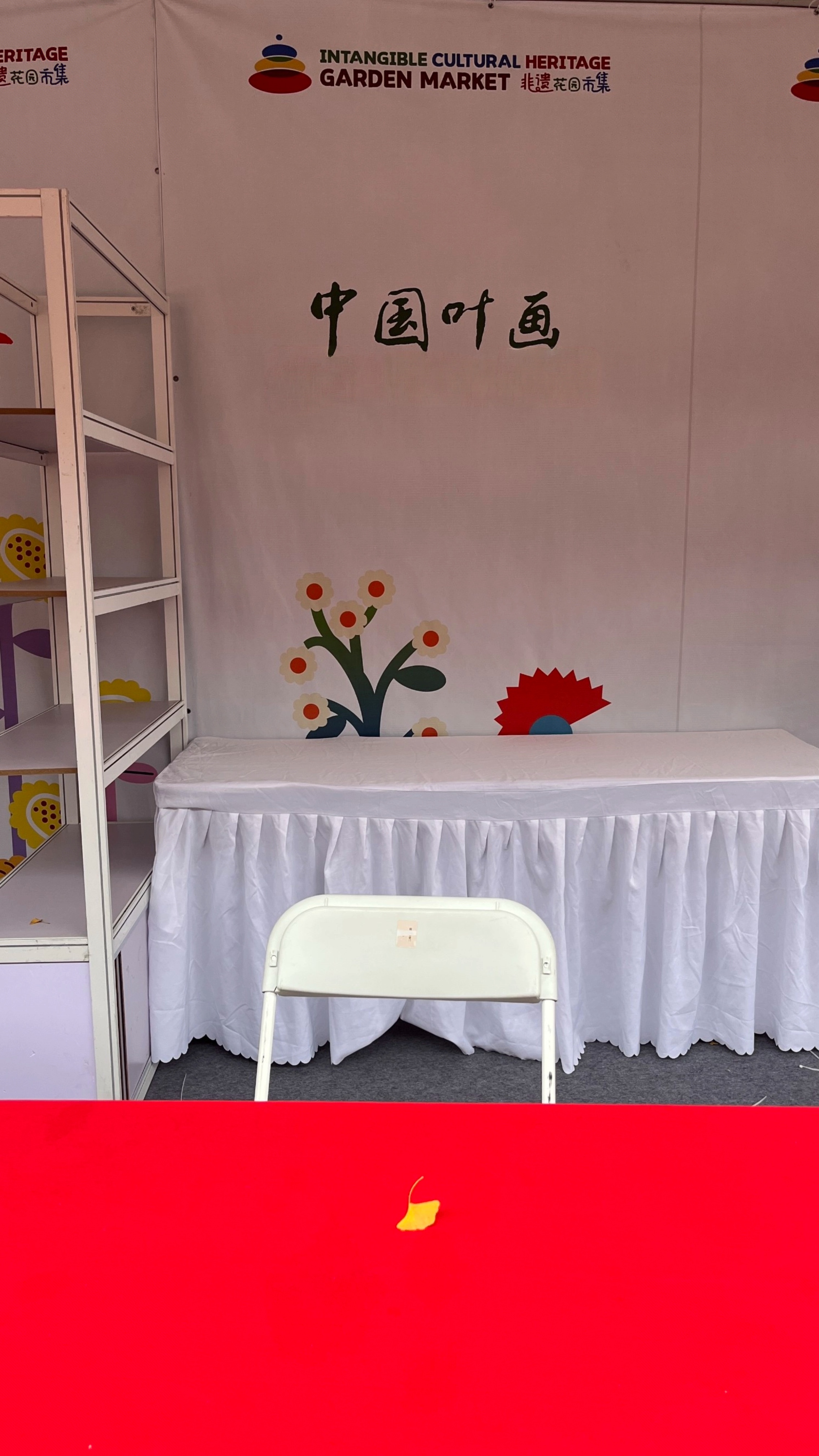 有意思的是第一天早晨还未到,主办方发来一张图片,说有一片银杏叶恰好飞落到叶画展位,是巧合也是美好寓意!