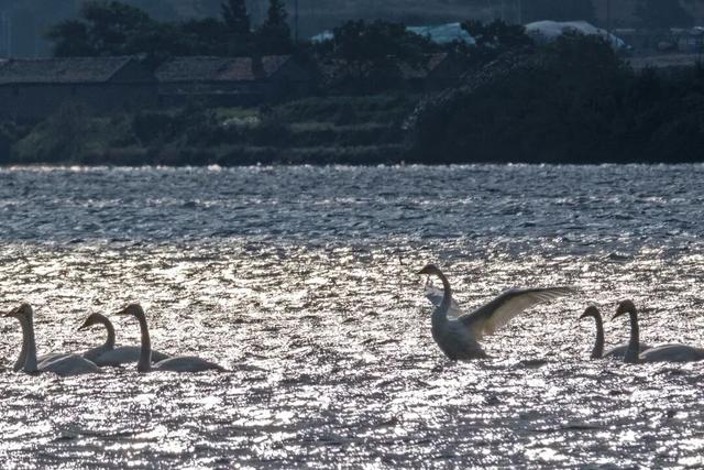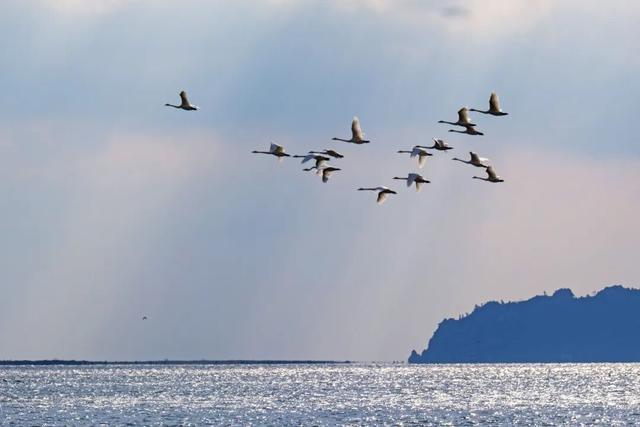 这是今年首批来荣成越冬的大天鹅,它们的到来也标志着荣成今冬天鹅季的正式开启。