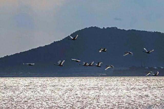 10月18日,首批19只大天鹅飞抵荣成大天鹅国家级自然保护区。