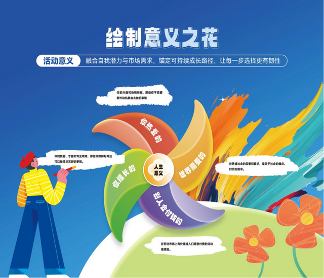 生涯嘉年华是一个面向全体大一学生开展的,以职业生涯规划探索为主题的大型户外游戏式、闯关式体验活动。在参与本活动的过程中,通过投入体验精心设置的一系列活动环节,学生可以进一步探索了解外部世界和自我内在渴望,在明确当前自我定位的基础上,确定行动的方向与规划,以开启掌控自己生涯发展的第一步!