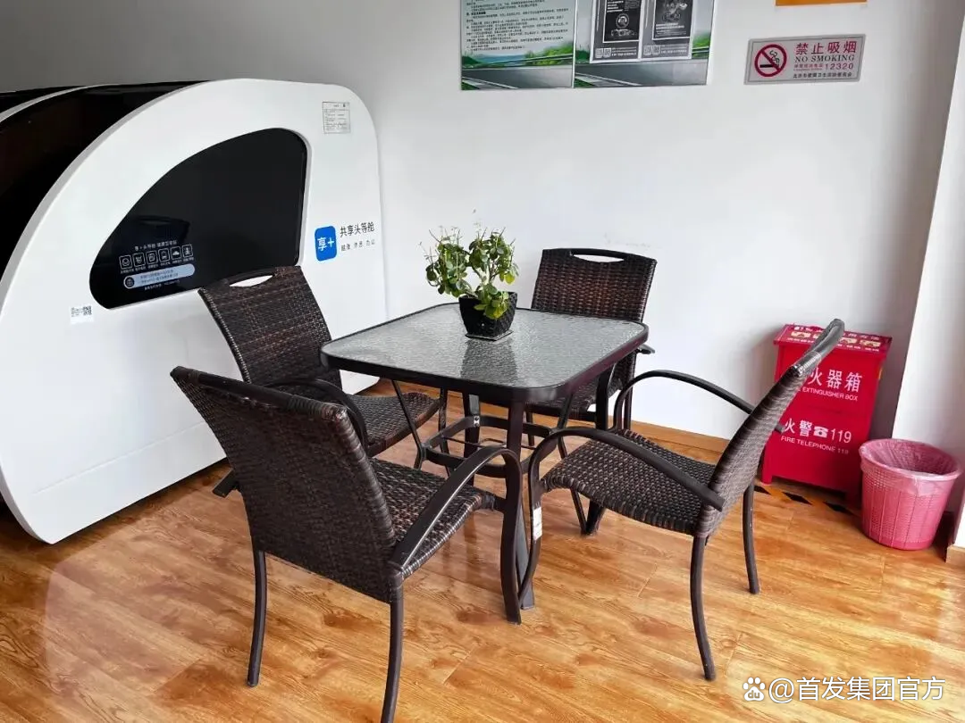 窦店服务区以“科学分区、动静分离”为理念,全面优化空间与设施配置。休息区引入符合人体工学的躺椅与可调节沙发床,搭配独立隔断或隐私帘,保障司机私密休息,加装新风系统,促进室内空气流通;淋浴间升级恒温花洒,地面铺设防滑地砖与防滑垫,并增设女士专用淋浴间与卫生间;户外休息区加装遮阳防雨棚并进行绿地硬化,拓展休憩空间。韩村河服务区补充休闲功能,设置影音区与图书角,配备自助咖啡机与智能售卖机,丰富司机短暂停靠时的休闲选择。