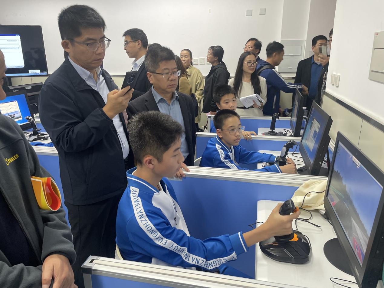 在课堂展示环节,玉渊潭中学通过6节多元的课堂展示了学校“人工智能+创新思维”的应用成果。在人工智能通识课上,学生以“班级形象密码”为主题,利用AI图像识别技术分析班级文化符号,通过数据可视化呈现设计方案,将抽象的班级精神转化为可感知的视觉元素,突出伦理道德,注重价值引领;在渊博天工课堂上,学生团队协作完成智能台灯的设计与制造,从电路搭建、传感器调试到3D打印外壳,全程体验“想法-设计-原型-迭代”的创新流程;渊博航空课堂气氛尤为热烈,球形无人机对抗赛考验团队策略与临场应变能力,模拟飞行竞速项目更是让学生在虚拟驾驶中理解空气动力学原理……