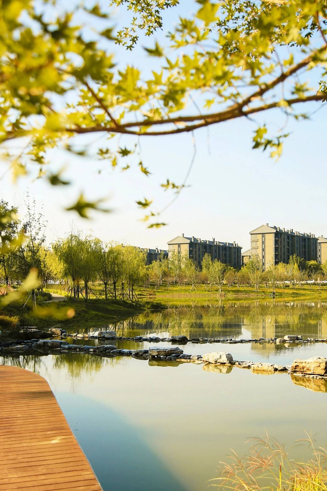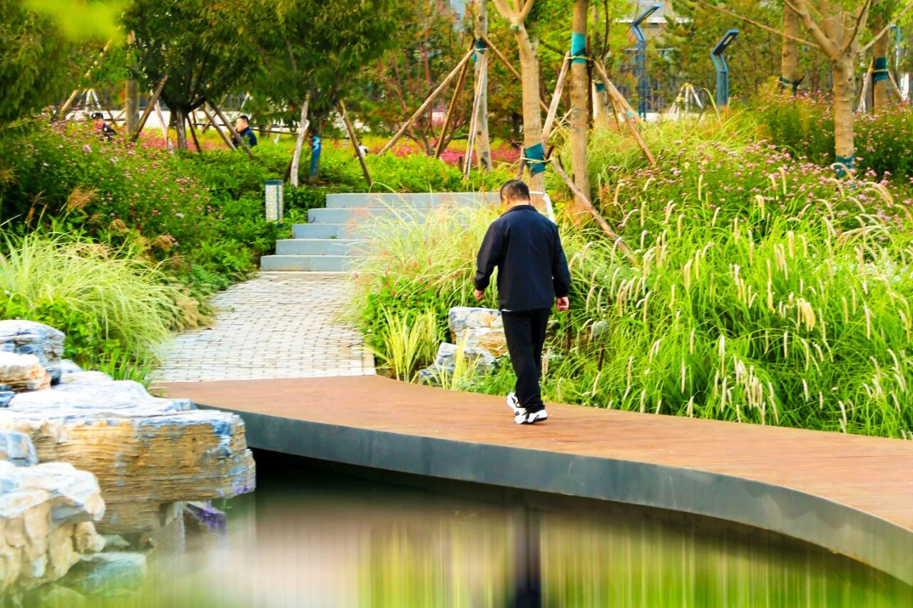 散步的居民三三两两,踩着落叶细语家常,画眉鸟的鸣叫与隐约的花香交织,在玉河湿地公园,“推窗见绿、漫步亲水”的愿景化作现实。