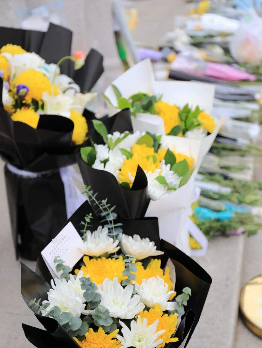 记者在现场注意到,有位外卖骑手手持花束匆匆赶来,经询问得知,这是一位无法亲至的市民通过外卖平台下的订单,委托骑手代为献花。这种“云祭奠”的新方式,传递跨越时空的敬意。