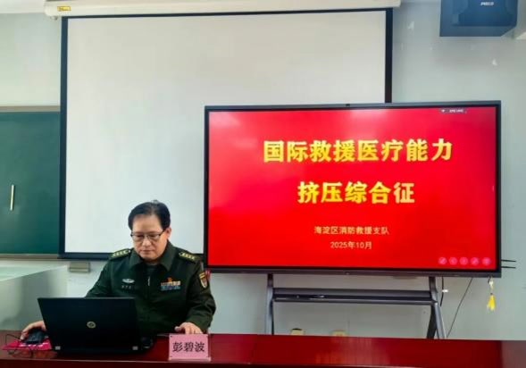作为培训的重要环节,培训中嵌入了“急救员技能和创伤生命支持(BTLS)”专项培训。在北京急救中心培训中心主任陈志等6位老师的培训下,学员们重点强化了在创伤现场的评估、处置与生命支持能力,为应对各类灾害事故打下坚实技术基础。随后,参训人员赴国家地震紧急救援训练基地及北安河区域,继续开展地震救援、水域救援等复杂环境下的实战演练,内容涵盖挤压综合征识别、遗体处理规范及心理干预等关键技能。