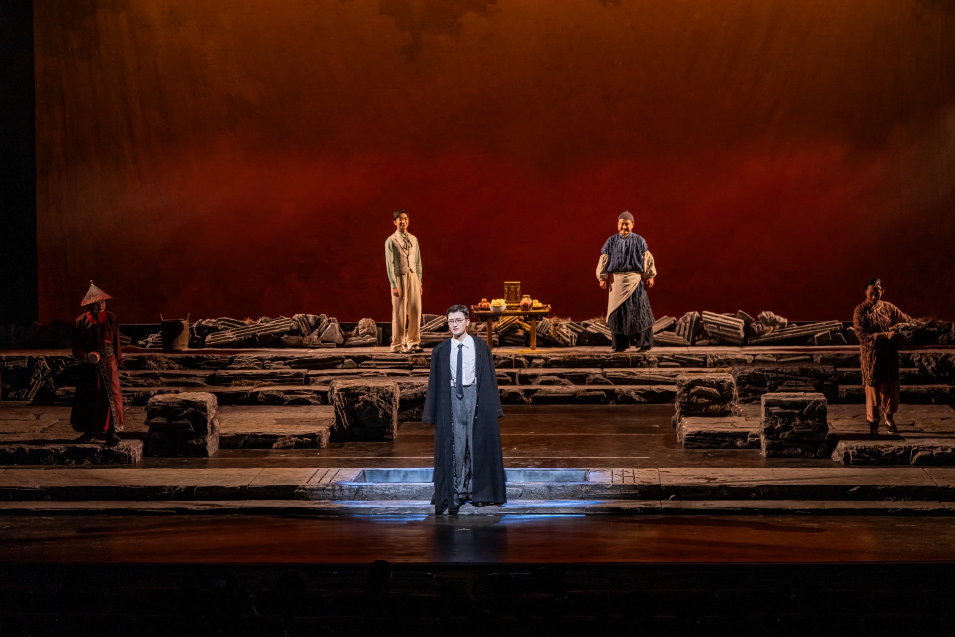 轮船汽笛声轰鸣响起,又有一艘船将要驶离码头、去往辽远的他处,船上的人踌躇满志,迎送的人挥手不止。10月17日,入选“大戏看北京”2025展演季、第九届老舍戏剧节的原创话剧《我这半辈子》,作为北京文化艺术基金2021年及2024年度资助项目,随着这样一连串汽笛声的响起,在北京天桥艺术中心中剧场正式启幕。